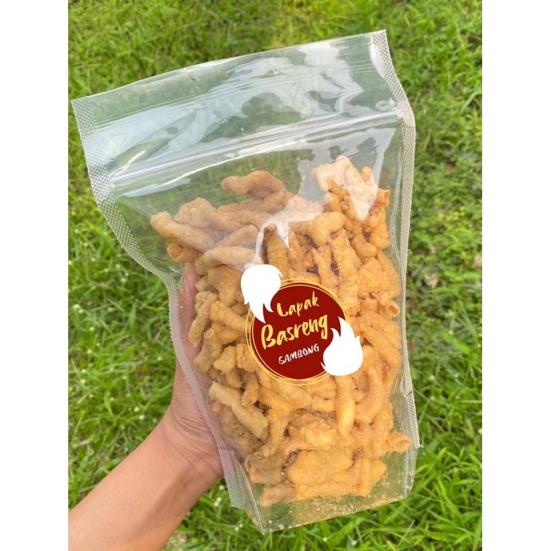 Nikmati sensasi kenikmatan camilan yang renyah dan penuh rasa dengan Usus Krispy! Terbuat dari usus ayam pilihan yang digoreng dengan sempurna, menghasilkan tekstur renyah yang memanjakan lidah. Dibumbui dengan perpaduan rasa pedas yang menggigit dan kesegaran daun jeruk yang khas, camilan ini cocok untuk teman nongkrong atau ngemil di berbagai kesempatan.