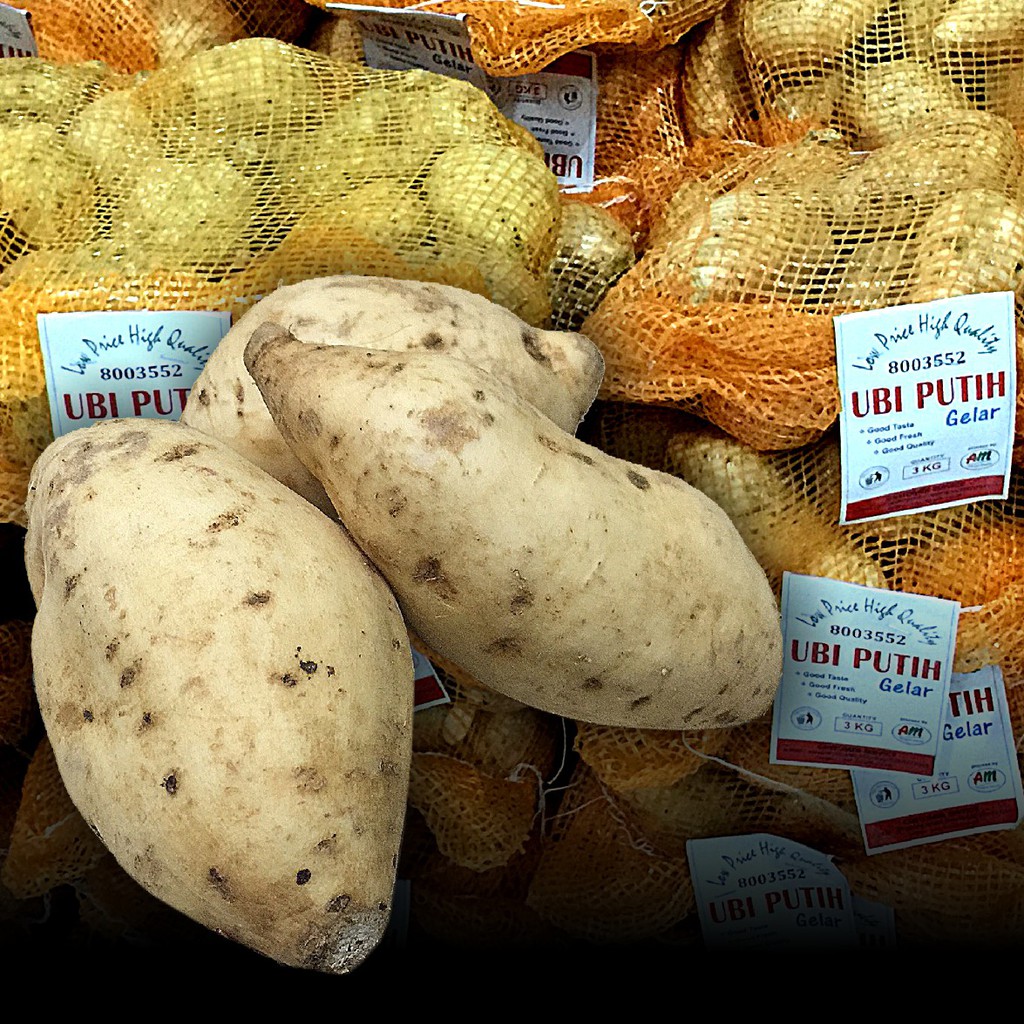 Ubi dengan ciri khas kulit berwarna putih dan daging berwarna putih, tekstur lembut dan pulen, rendah lemak. Sangat baik dikonsumsi oleh penderita Diabetes, Stroke dan Hypertensi. Cocok untuk : Bahan Kue, Kripik, Kolak, dan dapat juga digunakan sebagi pengganti nasi.