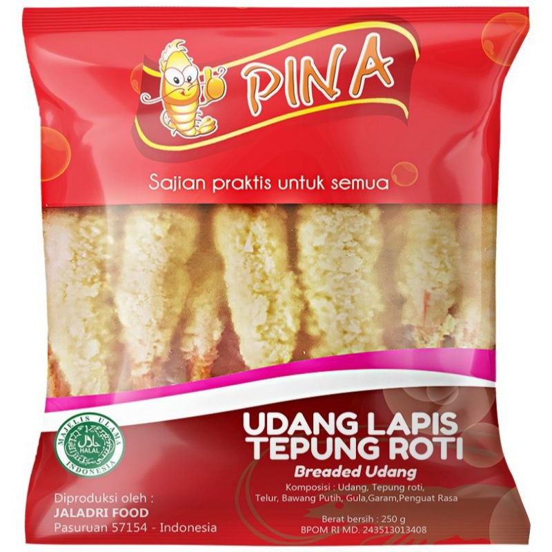Udang Lapis Tepung Roti Pina merupakan lauk dan cemilan praktis, lezat dan pastinya bersertifikat Halal MUI dan terdaftar di BPOM RI.