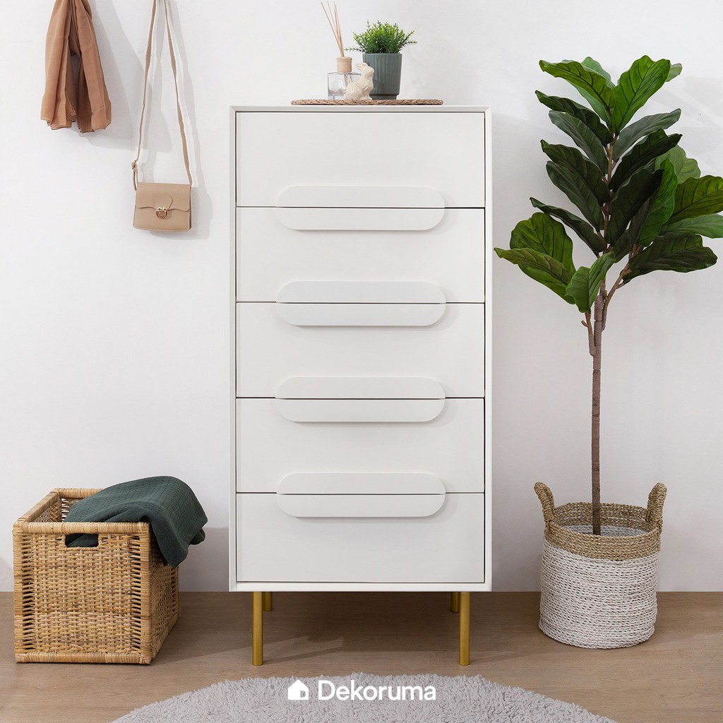 Type chest Drawer JS5CS Warna : White Invory Bahan : Kayu MahonyDimensi : P 60 L 45 T 127 memiliki 5 laci bahan terbuat dari kualitas kayu mahony terbaik dengan desain yang minimalis dan elegan