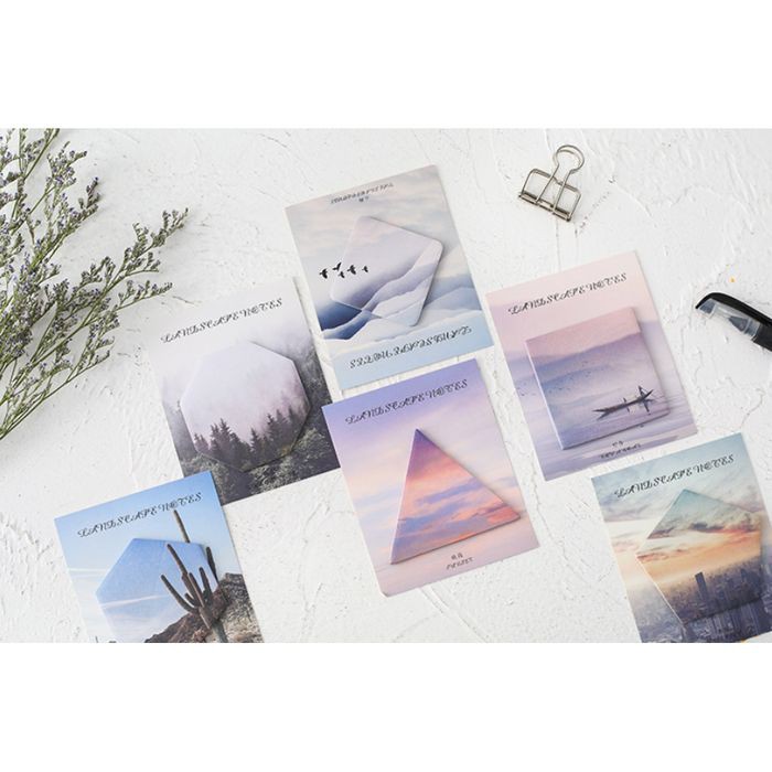 Stick note Landscape ini bentuknya beranekaragam, motif keren, warna bagus. kertas tebal, bisa menempel. Cocok untuk menulis memo, reminder, dan catatan kecil.