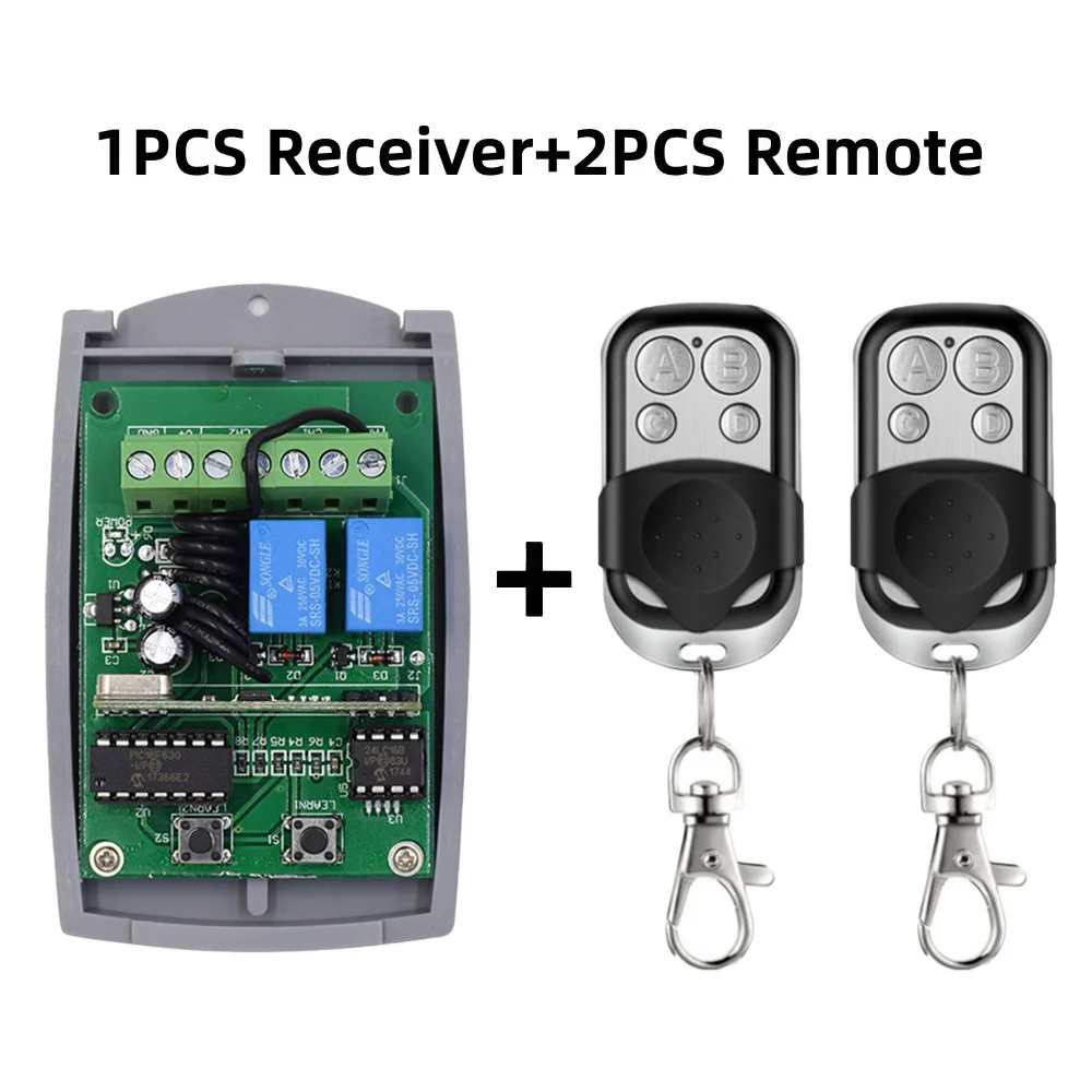 Universal Garage Door Receiver 2CH Relay Switch 433.92Mhz Remote Control Rolling Code Transmitter For Gate Controller