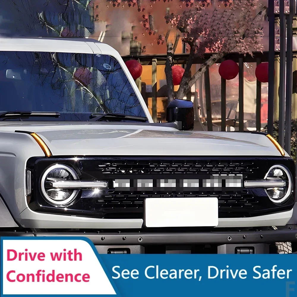 Upgrade LED Flashing Signal Light Front Hood Light Assembly Plug and Play Accessories For Ford Bronco Front Hood 2021-2024