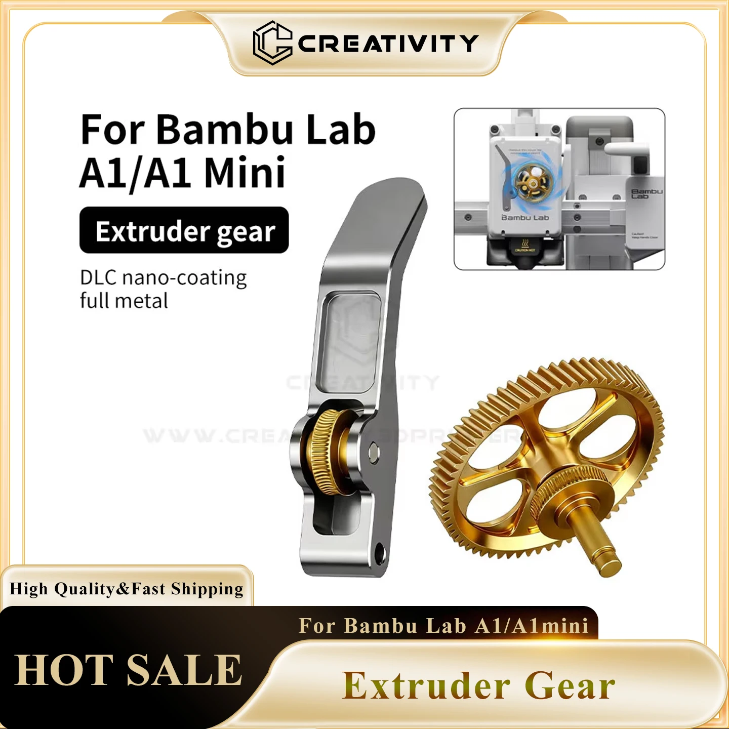 Upgraded Extruder Brass Gear For Bambu-Lab A1/A1 Mini 3D Printer Golden RNC Nano Coating Hardened Tool Steel Extruder Gear