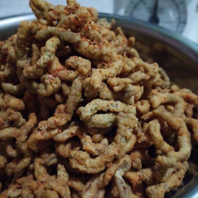 Usus krispi yang kriuk dengan rasa pedas yang khas dan ada rasa original.