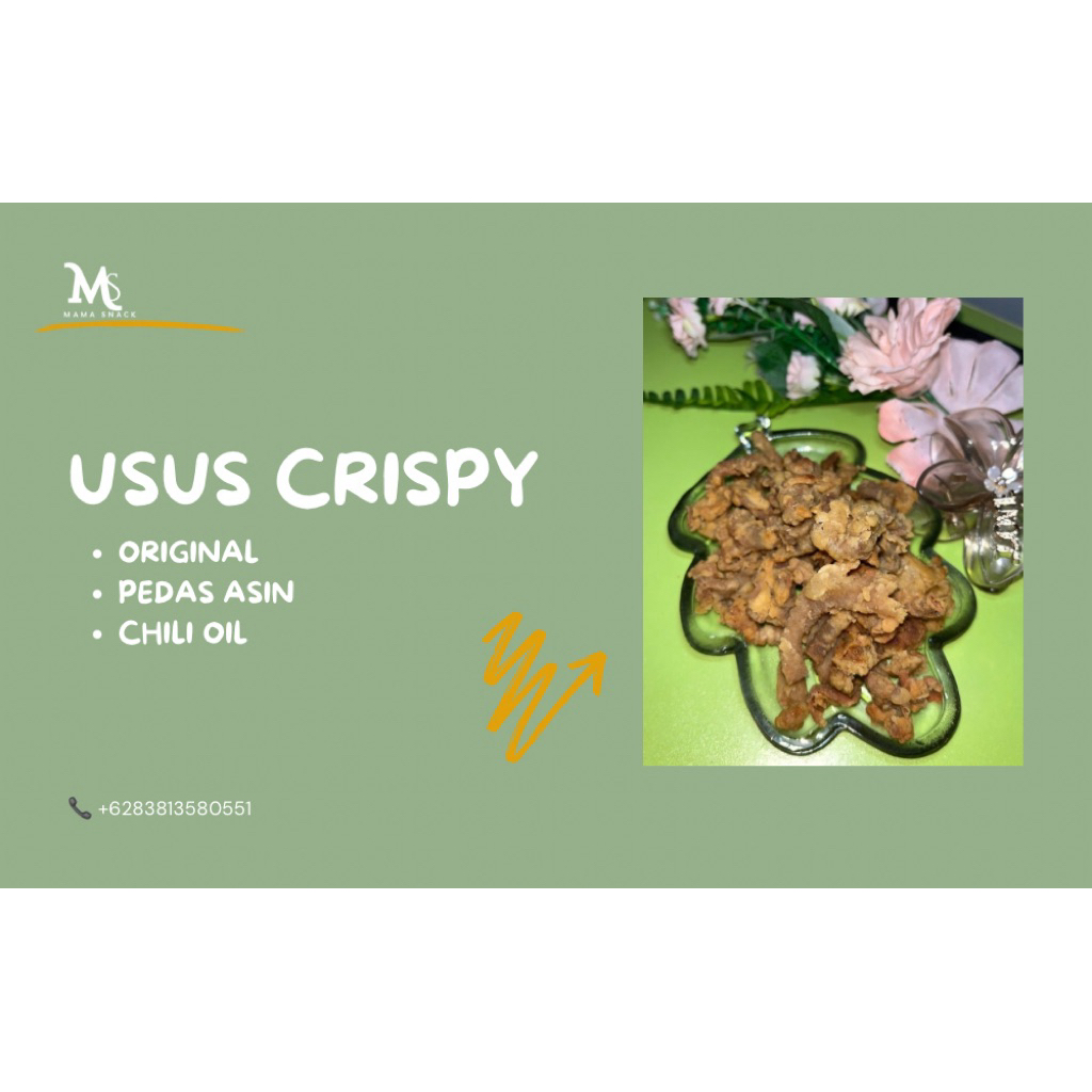 Usus Crispy Mama Snack terbuat dari usus yang telah dibersihkan 5kali dengan baik dan teliti, lalu diolah dengan tepung pilihan yang diracik oleh tangan tangan ahli kami.