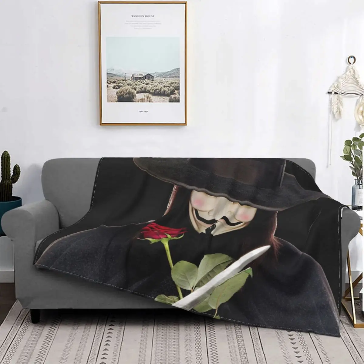 V для Вендетта Плющ Хаммонд научная фантастика одеяло из фильма Фланелевое весенне-осеннее теплое одеяло с ножом и розой для зимнего постел...