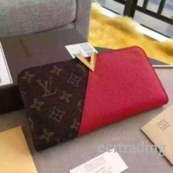V-образный кошелек коричневый контрастный цвет шить длинные молнии дамы топ Quanlity PU кожаный бумажник карты сумочка кошелек