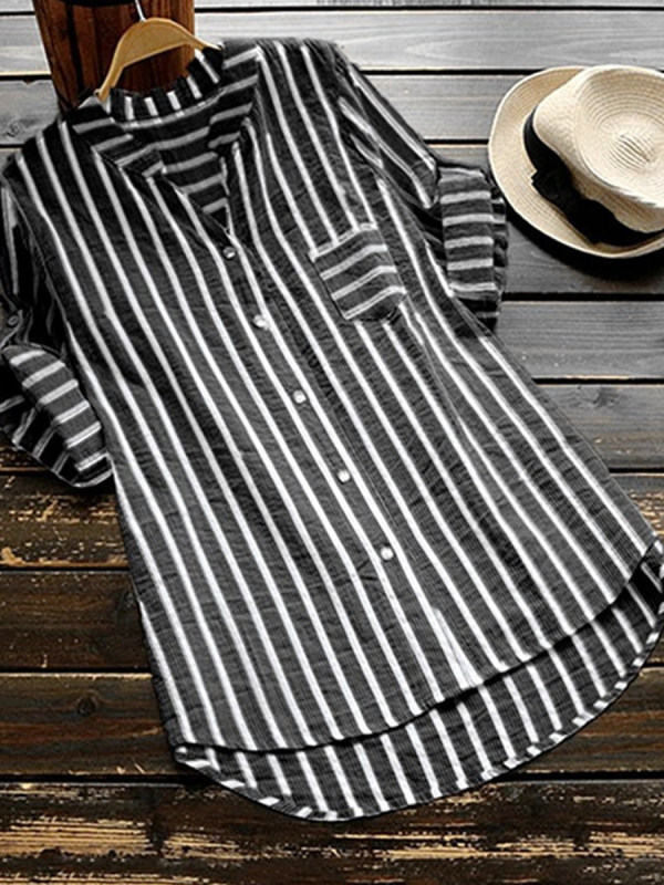 V Neck Loose Fitting Stripes Blouses