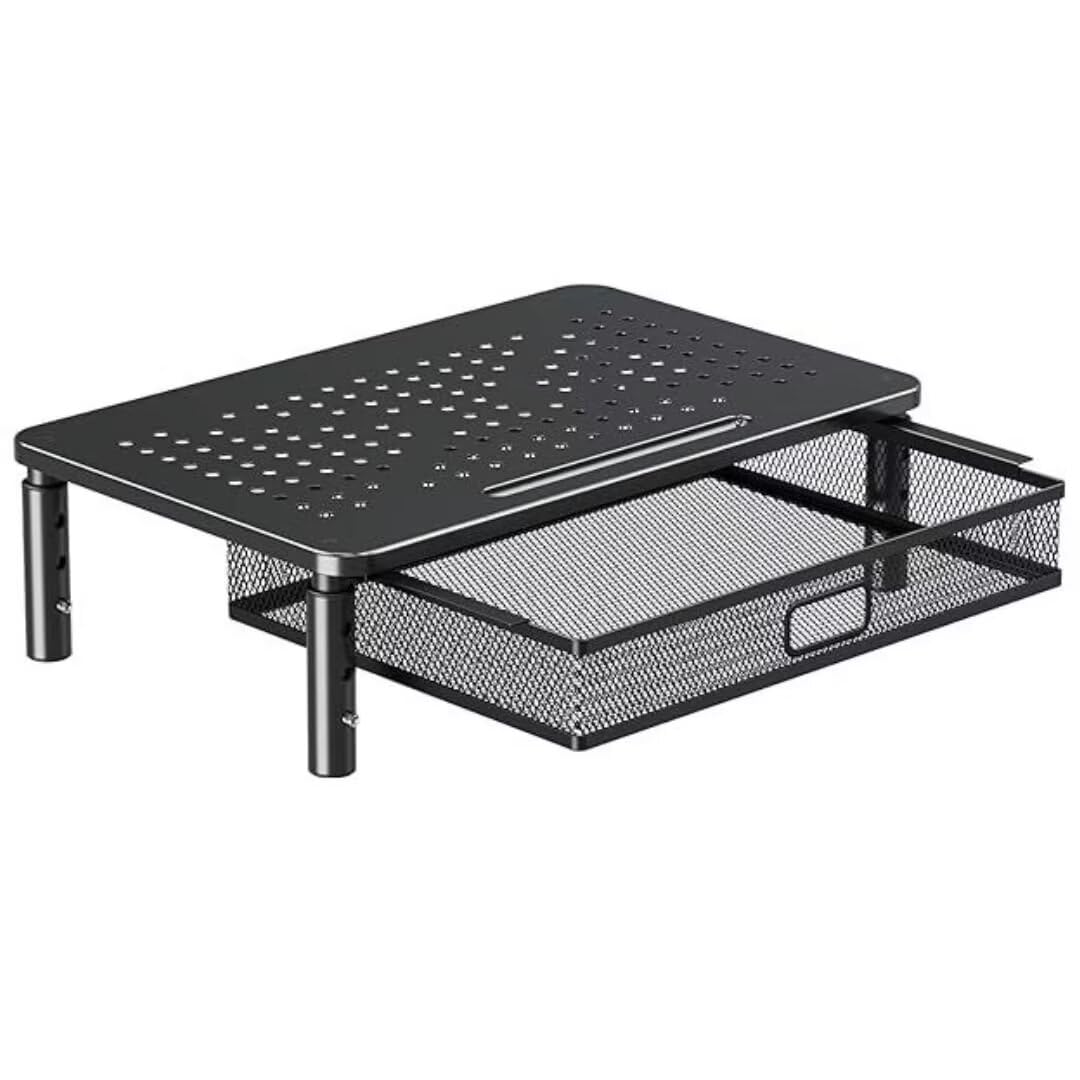 VARMHUS Монитор Монитор Настольная подставка с 3 уровнями высоты Грузоподъемность Перфорированная Легкая подставка, Подставка, Ящик, Регулировка, Сталь, 15 кг, Противоскользящая, чёрный