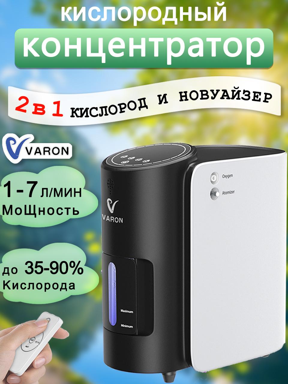 VARON Портативный кислородный концентратор Кислородный аппарат для дома Регулируемая концентрация 1-7 л/мин 2в1 Кислородная ин-га-ля-ция рас-пы-ле-ние