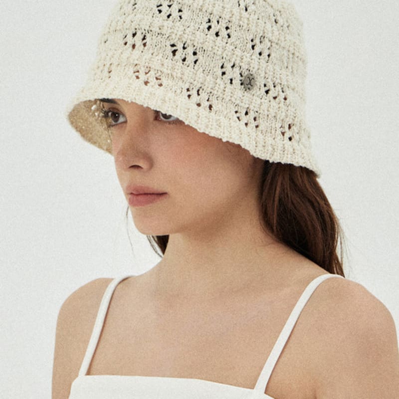 VARZAR VA Изогнутая овальная металлическая шляпа-ведро с цветочной перфорацией и вязаной текстурой, кремовая FREE