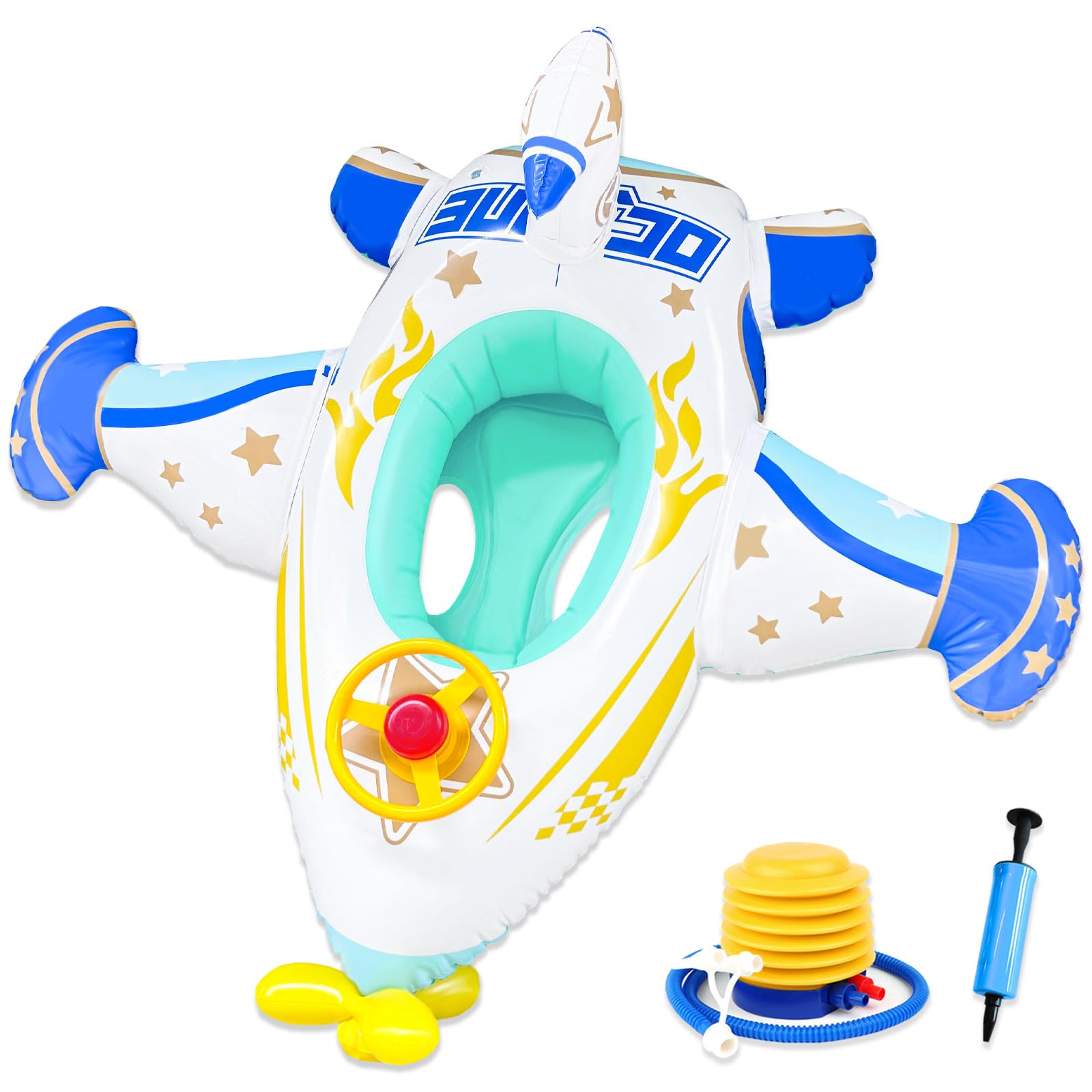 VBACALA Самолет 3D Плавающий 2 Типа Воздушных Насосов Водный Поплавок Поплавок, Тип Ноги в , Форма, Детский Поплавок, Ручка, Пропеллер, Кольцо, Поплавок, Поплавок, синий