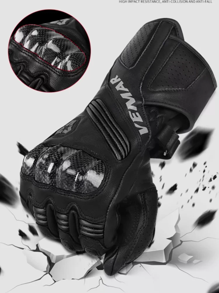 VEMAR VE-313 мотоциклетные перчатки из натуральной кожи из углеродного волокна, четыре сезона, дышащие перчатки с сенсорным экраном и полными пальцами, черные