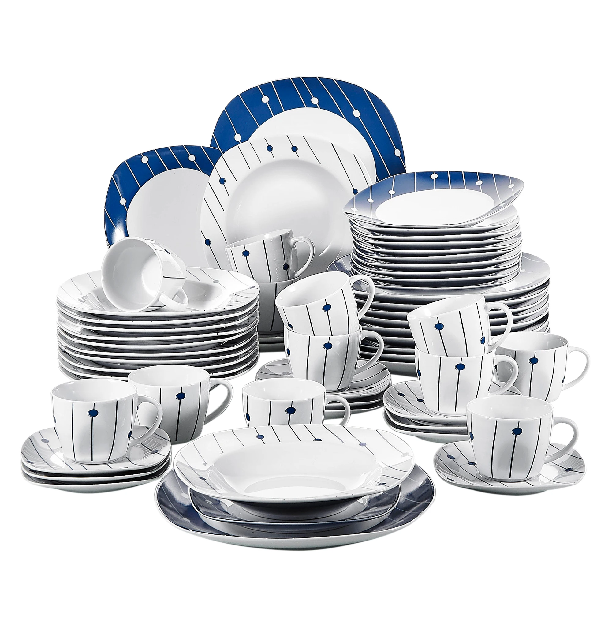 VEWEET DOT001 посуда из 60 предметов, керамическая столовая посуда, набор тарелок, фарфоровая тарелка для десерта, чашка для супа, набор тарелок