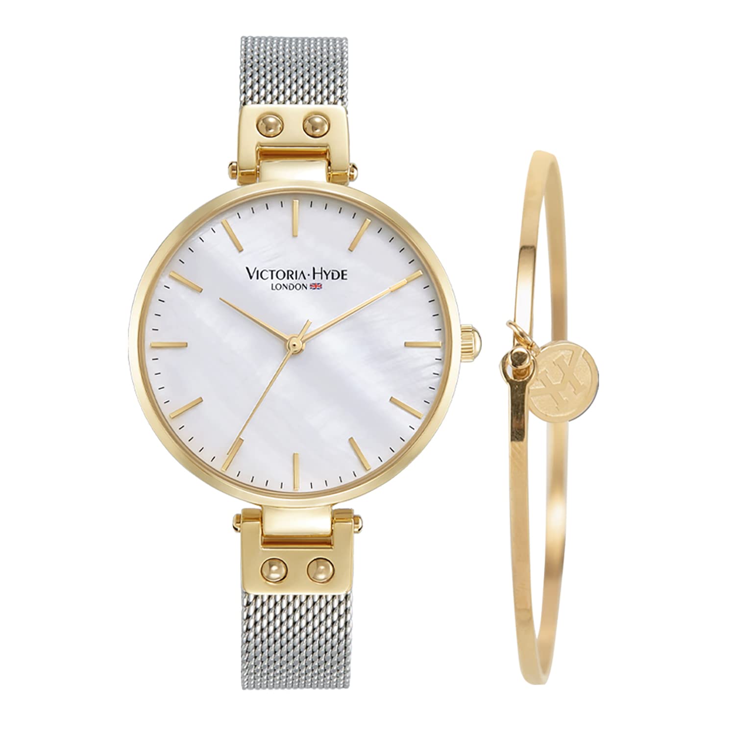 VICTORIA HYDE женские часы браслет набор модные кварцевые часы водонепроницаемые часы из нержавеющей стали браслет женские популярный подарок (Серебро + Золото)