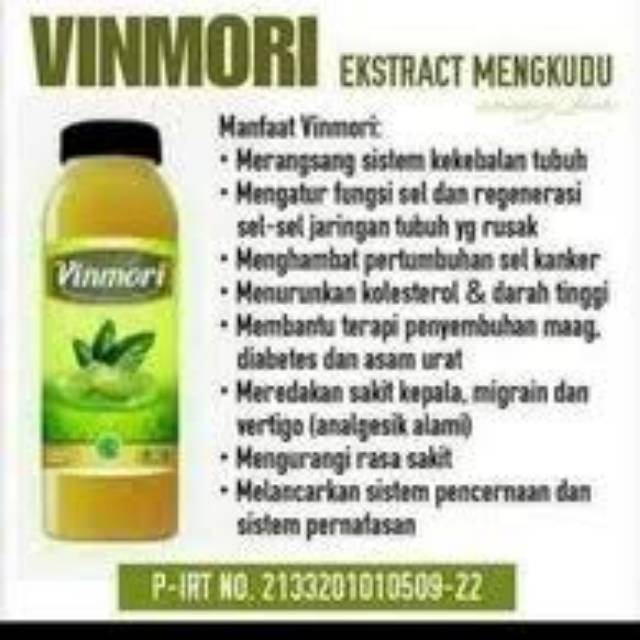 Vinmori adalah cuka alami yang dibuat dari perasan buah mengkudu jenis Morinda Citrifolia yang mengandung antioksidan dengan manfaat dan khasiat yang baik untuk kesehatan.