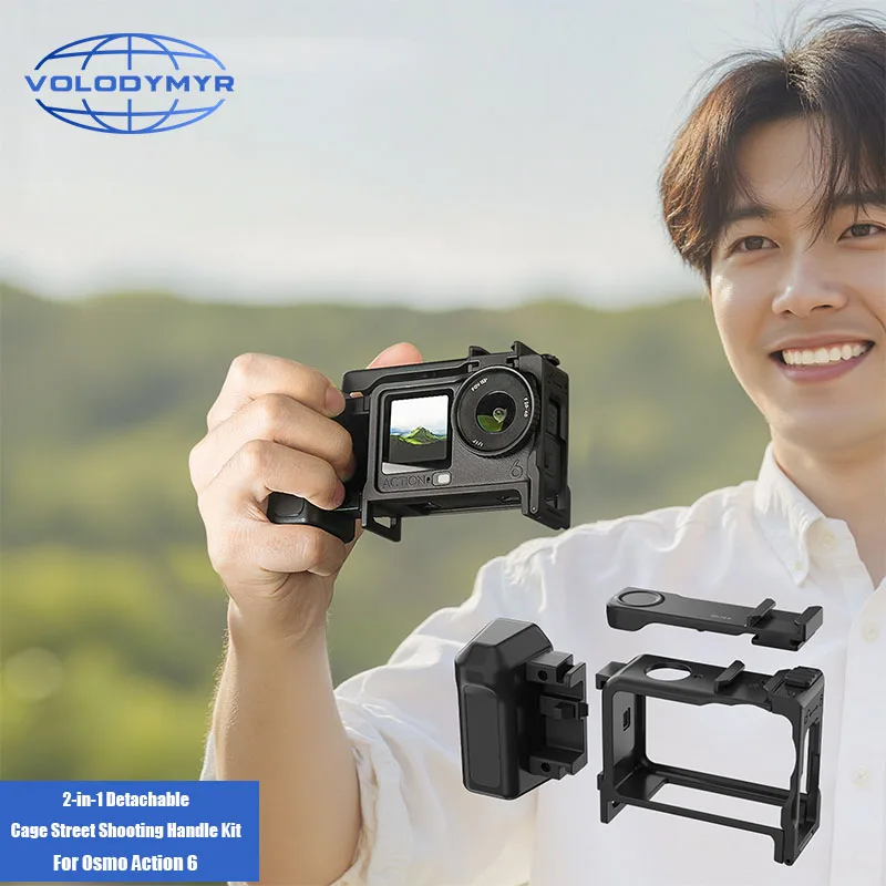 VOLODYMYR Action 6 2-in-1 Detachable Rabbit Cage Street Shooting Handle Set Street Shooting Grip Protective Frame Camera Mount
