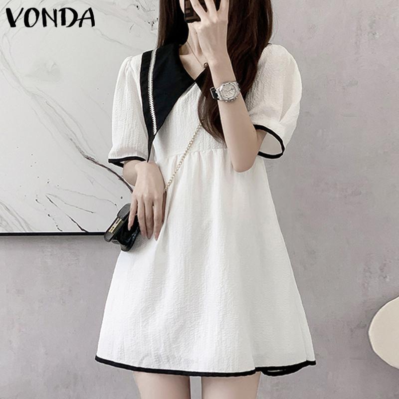 VONDA Летнее женское короткое платье с v-образным вырезом и пышными рукавами