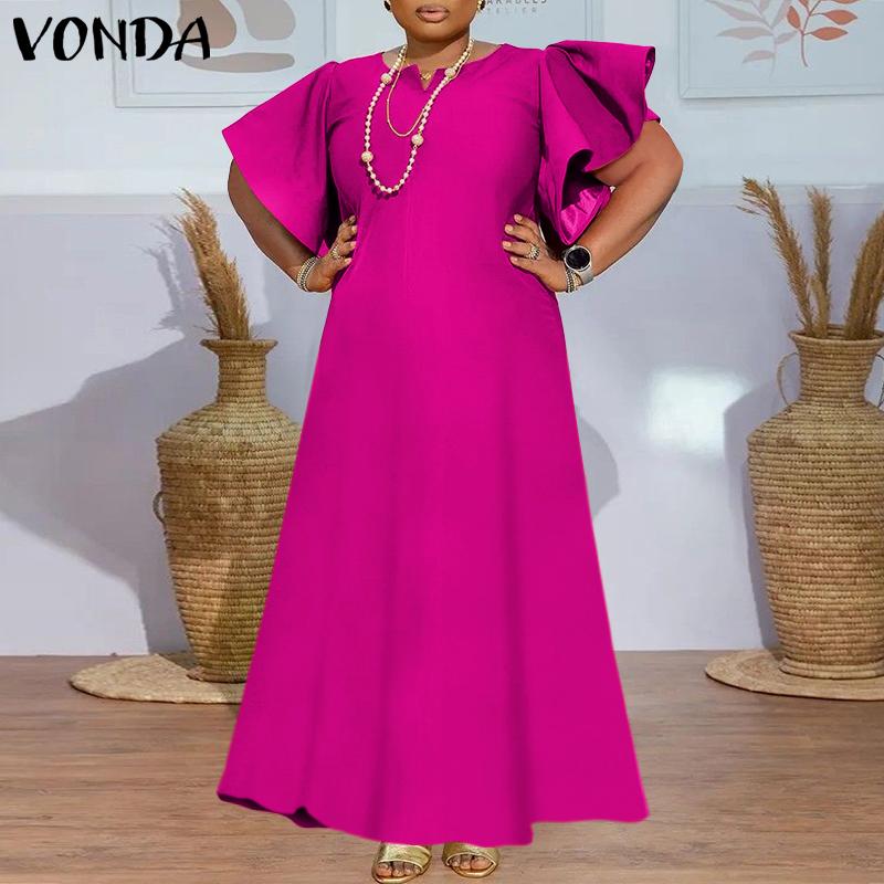 VONDA Летнее женское платье больших размеров с короткими рукавами и оборками, однотонное вечерние длинное платье