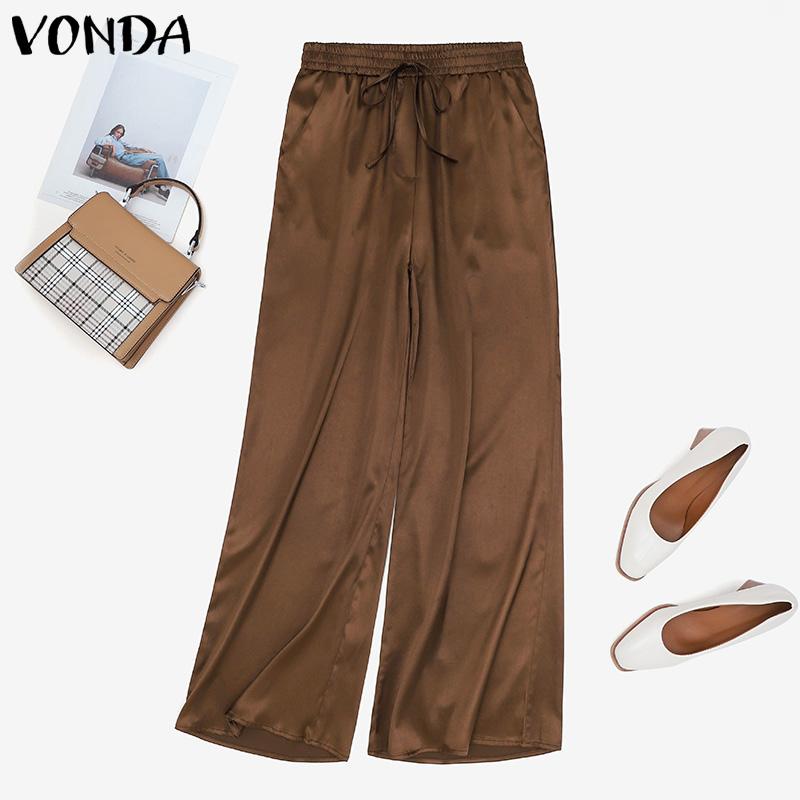 VONDA весенние женские модные большие размеры с эластичной резинкой на талии, широкие брюки, длинные брюки палаццо, элегантные повседневные свободные брюки макси #2