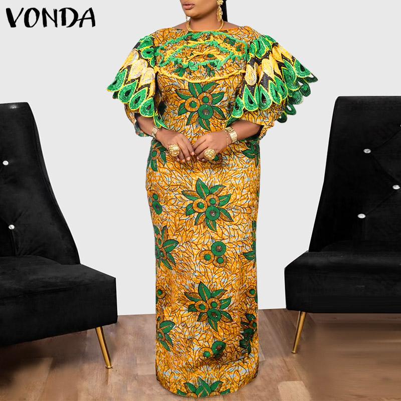 VONDA женские длинные платья большого размера с рукавом 3/4 и круглым вырезом с принтом