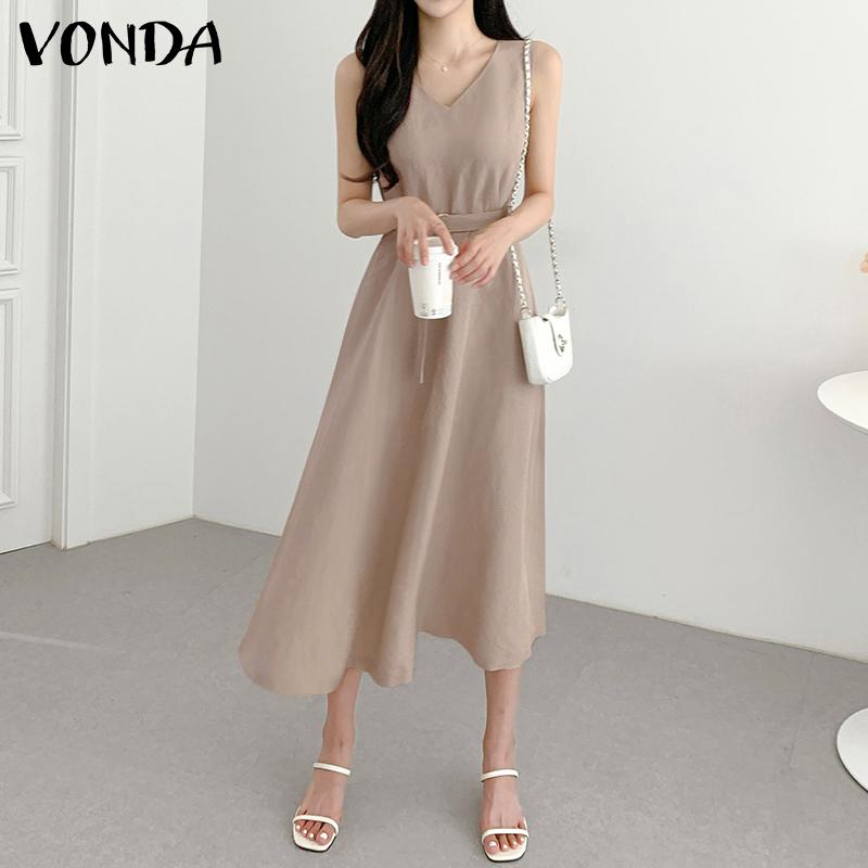VONDA женские летние однотонные свободные платья без рукавов с v-образным вырезом и поясом на талии