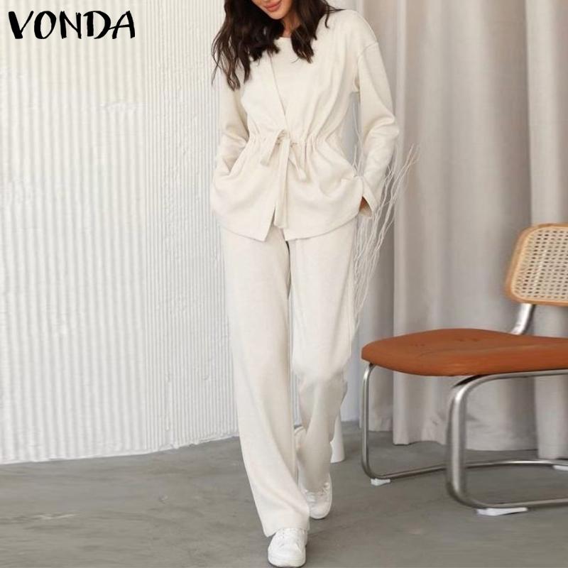 VONDA женские осенне-весенние комплекты из 2 предметов с v-образным вырезом, повседневные свободные широкие брюки
