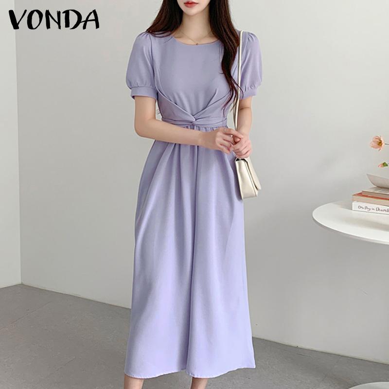 VONDA женское летнее свободное платье трапециевидной формы с короткими рукавами и плиссированной талией, летнее однотонное свободное платье трапециевидной формы