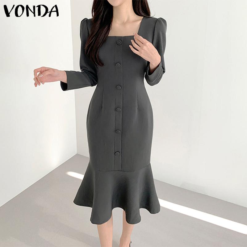 VONDA летнее женское платье-миди с квадратным воротником и талией