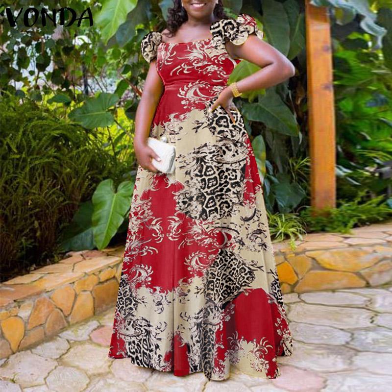 VONDA плюс размер женская без рукавов с квадратным воротником праздничная туника длинное платье винтажное свободное вечернее платье с принтом