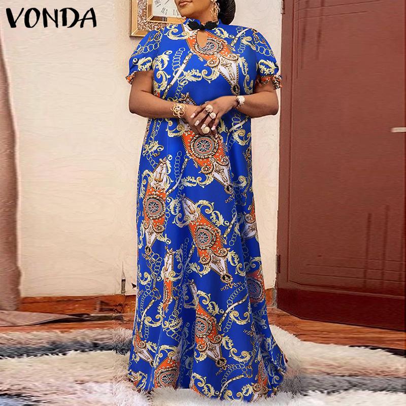 VONDA плюс размер женское летнее вечернее платье трапециевидной формы женское свободное платье макси с коротким рукавом в стиле ретро с принтом