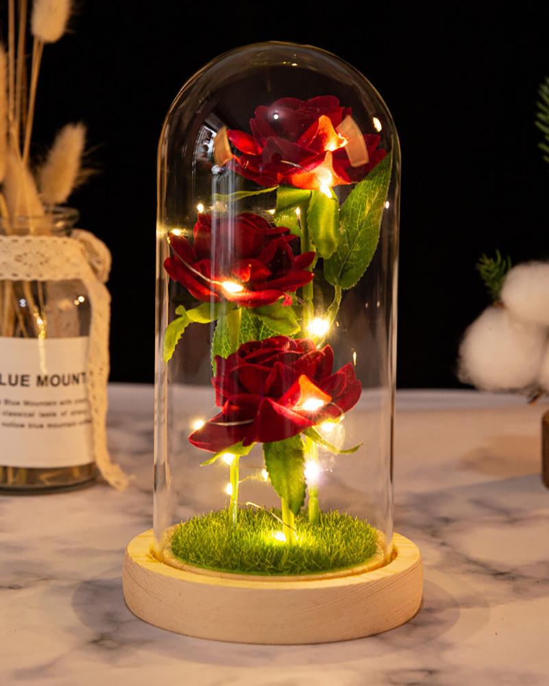 Valentine Rose Gift Decorations Artificial Flower Rose With Led Light String, Style2