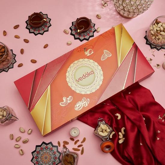 Vedaka Premium Dry Fruits Combo | Подарочная коробка 400 г | Миндаль 100 г, Кешью 100 г, Изюм 100 г, Фисташки 100 г