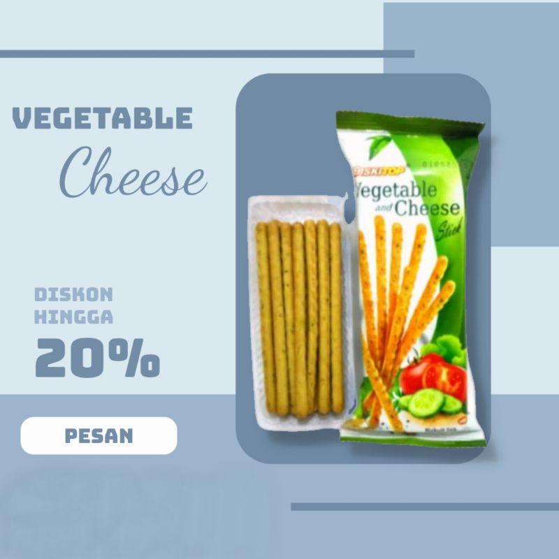 Biskuit roti stik yang dipadukan dengan keju dan sayur mayur menjadikan rasa yang enak gurih dan nikmat Pas banget untuk camilan saat santai, kerja, belajar maupun sambil nonton.