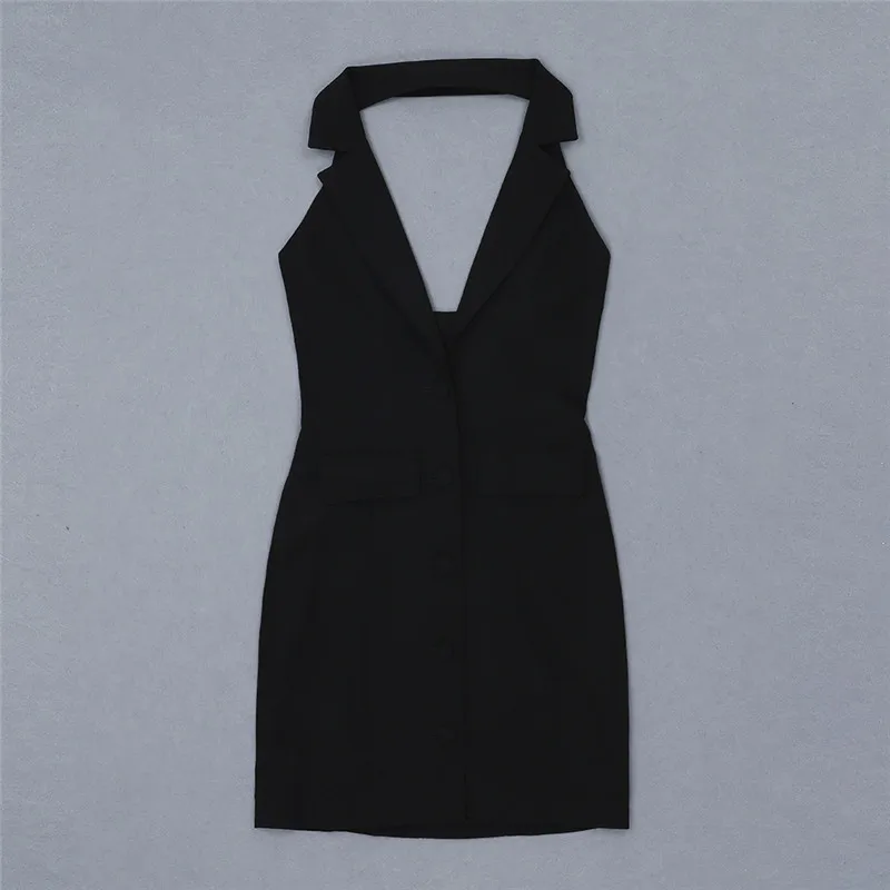 Vestido модные женские платья с лямкой на шее без рукавов с открытой спиной Мини Черное шикарное вечернее платье знаменитостей для ночного клу...