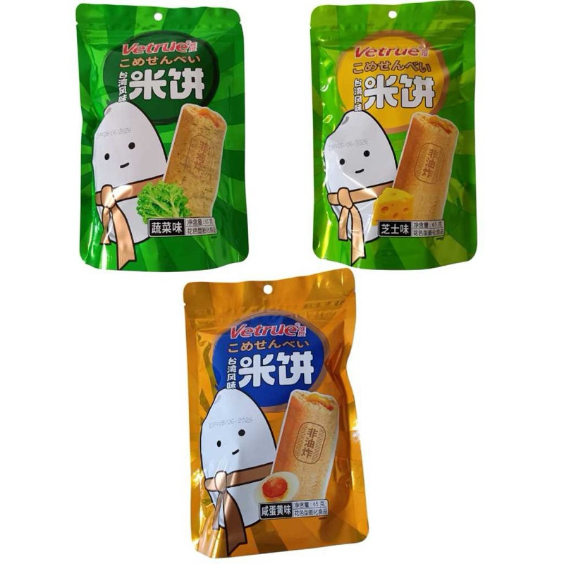Vetrue Rice Cracker kemasan 65gr tersedia 3 varian rasa : Keju, Egg yolk, Sayur