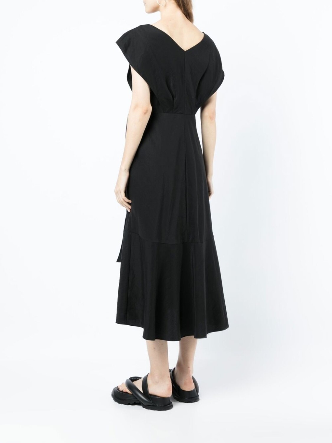 Черный, хлопок, детали с оборками, V-образный вырез, без рукавов и длина миди.