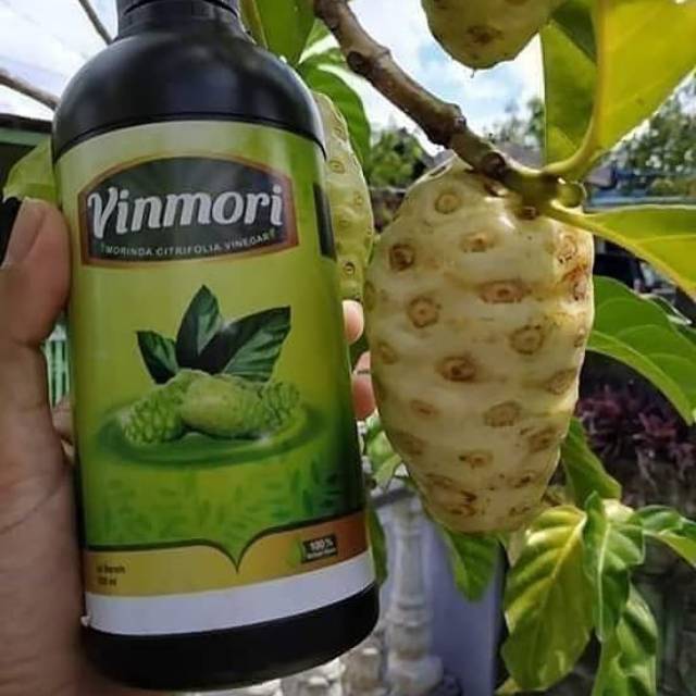 Cuka alami yang dibuat dari perasan buah mengkudu jenis Morinda citrifolia yang mengandung antioksidan dengan manfaat dan khasiat yang baik untuk kesehatan.