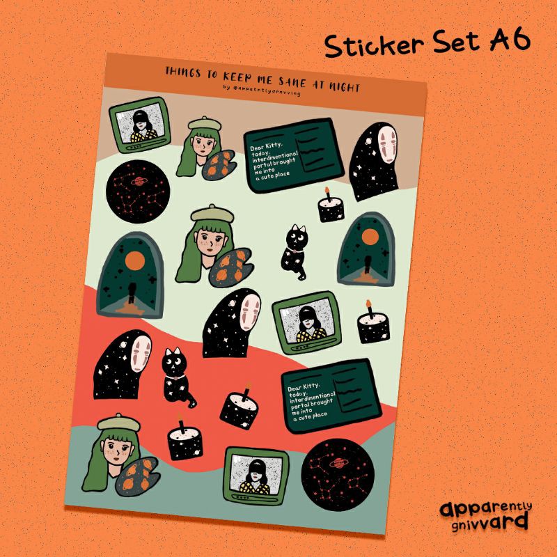 -Sticker set ukuran A6 "Things to keep me sane"
