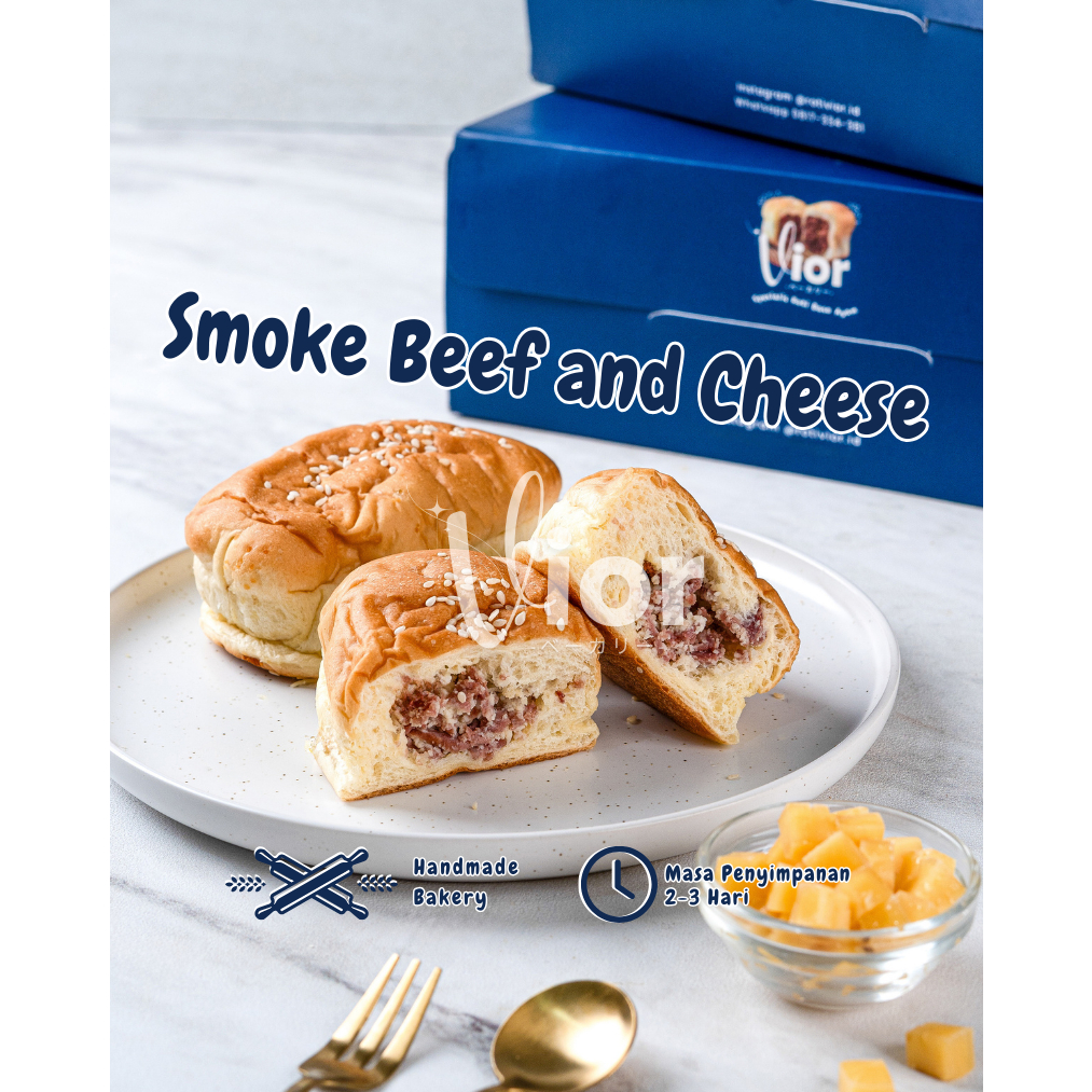 Roti Vior memiliki banyak varian – Roti Smoke Beef and Cheese, terbuat dari bahan alami tidak ada tambahan bahan kimia dan tanpa bahan pengawet buatan. Silahkan dikonsumsi pada hari pembelian atau simpan dalam lemari es. Roti Vior dibuat berdasarkan pesanan sehingga selalu fresh (made by order). Roti Smoke Beef & Cheese, dengan isian cincangan daging sapi smoke yang wangi, dicampur dengan parutan keju yang melimpah.
