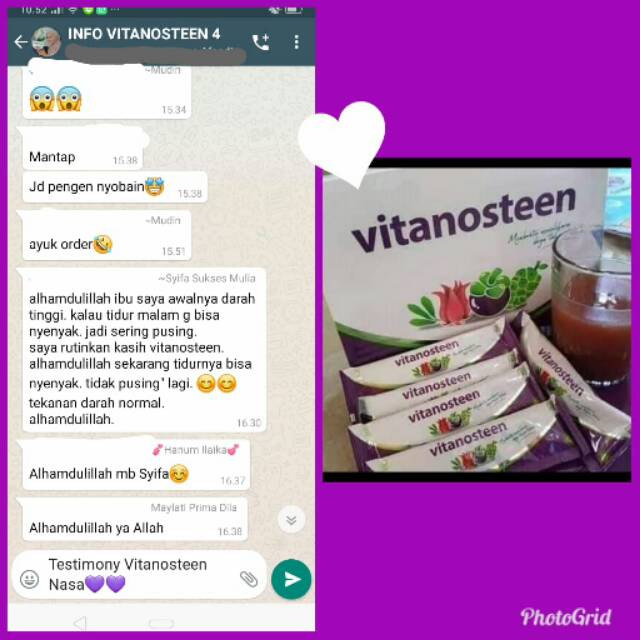 ✔ berikut testimoni real dari pemakai Vitanosteen , yang tadinya tidurnya tidak nyenyak, sering pusing dan punya darah tinggi kini tekanan darahnya normal , bisa tidur nyenyak dan tidak pusing2 lagi loh