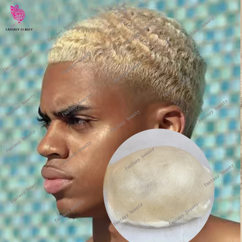 Vloop 15 мм 360 Wave # 60r Блондинка Серые Человеческие Волосы Протеззи Капиллярные Афро Черные Мужчины 0,06 мм Прочный Парик Полная Тонкая Кожа Мужской Парик