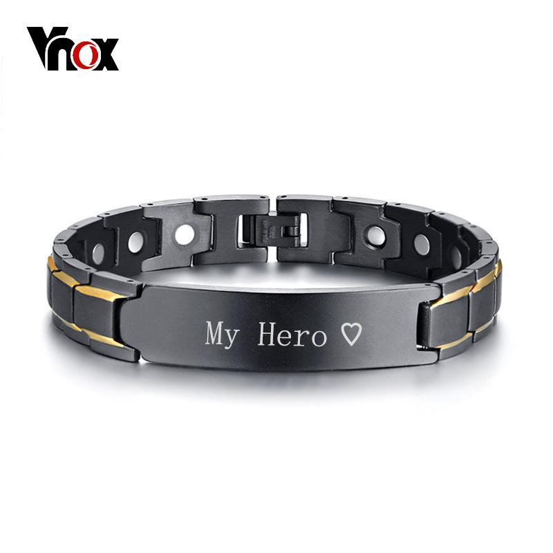 Vnox персонализированные идентификационные украшения, черные лечебные магнитные браслеты для мужчин, браслет из нержавеющей стали, браслет на день отца, папы