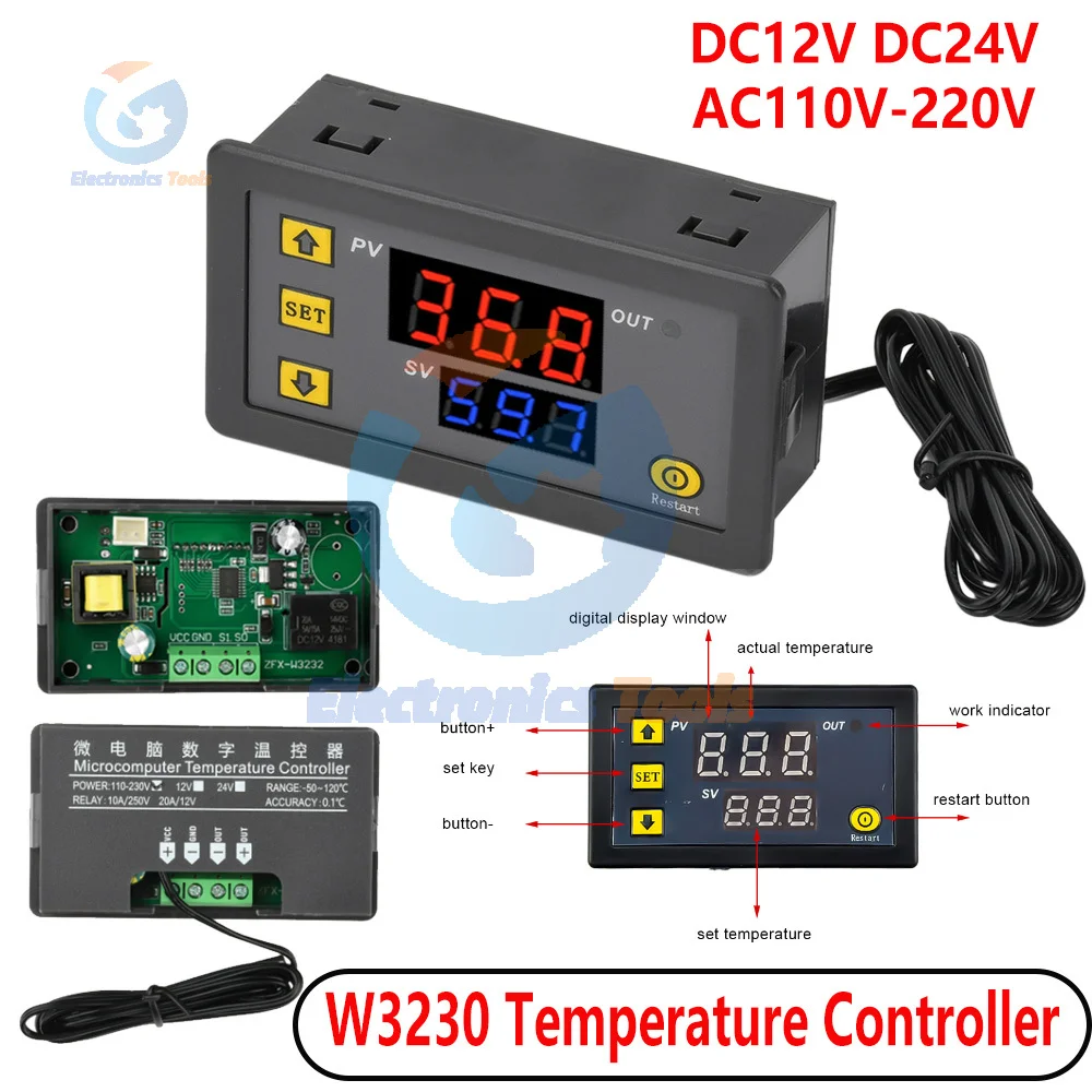 W3230 Relay Output Digital Temperature Controller 12V 24V 220V Thermostat Regulator Heating Cooling Control Thermoregulator