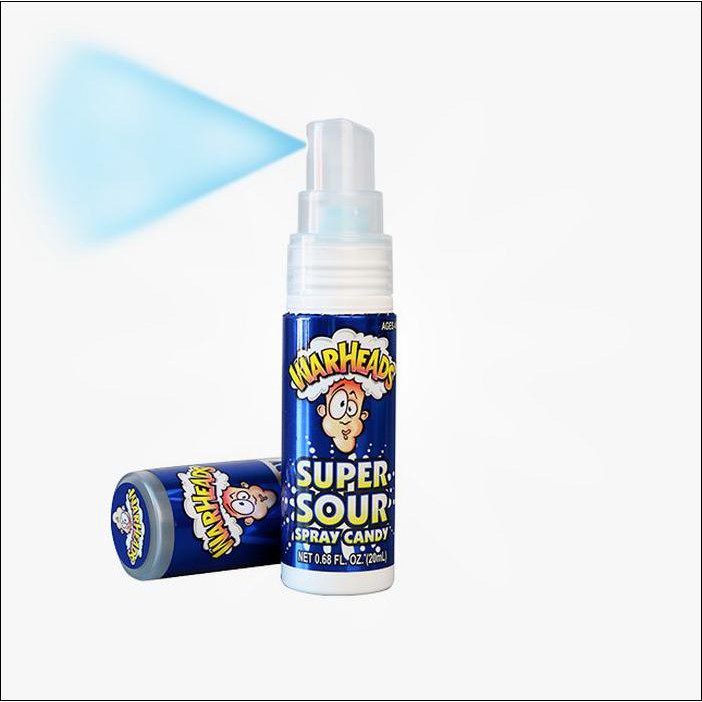 Warheads Spray candy permen unik yg dimakan dengan cara disemprot, tersedia dalam 3 rasa, strawberry, blueraspberry dan apple.