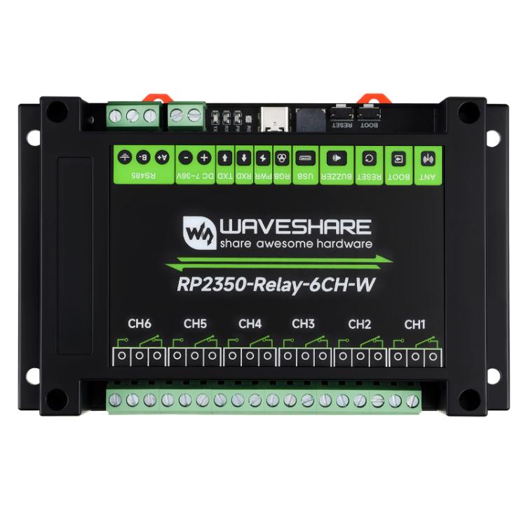 WAVESHARE RP2350 Industrial Control Board 6-Channel Relay Module, Based On RP2350 Microcontroller, Supports Wxternal Interfaces RS485 And Pico(With Wi-Fi Module)