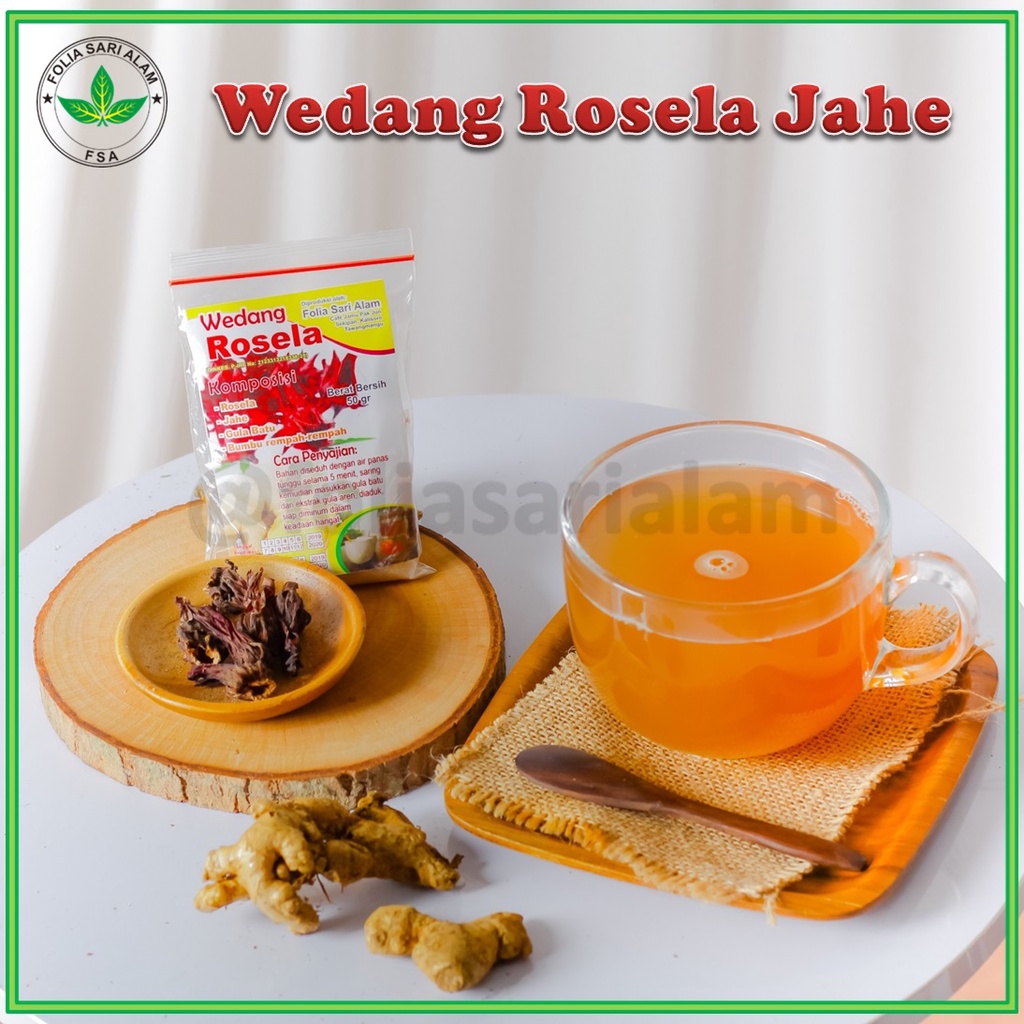 “Wedang Rosela Jahe” merupakan salah satu hasil produksi dari “Folia Sari Alam” yang bergerak di bidang industri rumah tangga. “Folia Sari Alam” memproduksi aneka minuman kesehatan tradisional yang 100% terbuat dari bahan alami serta diolah secara tradisional dan sudah terdaftar pada DINAS KESEHATAN yang tentunya sudah mendapatkan No.P-IRT resmi yang tertera pada kemasan.