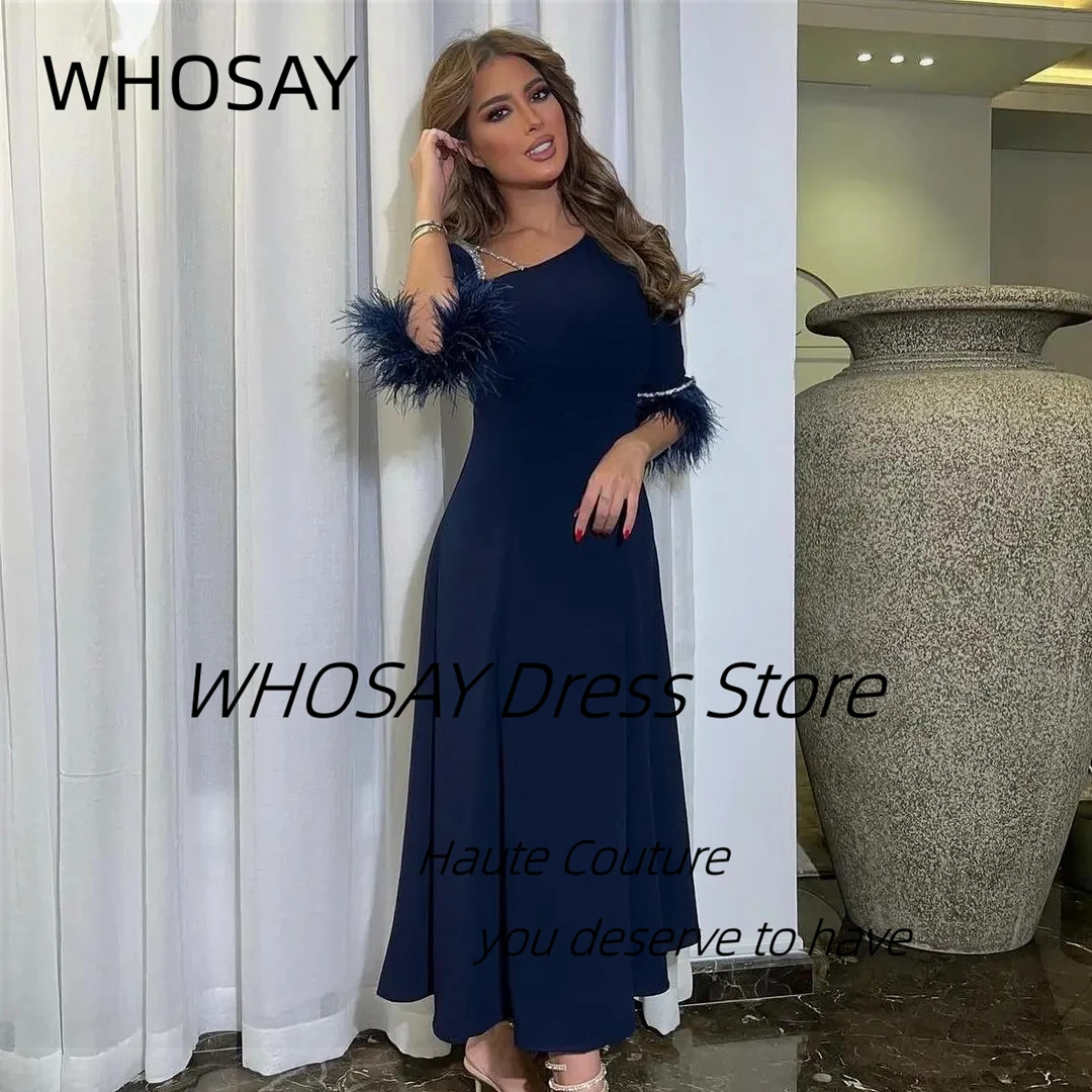 WHOSAY платья для выпускного вечера по индивидуальному заказу с перьями и половиной рукавов, женское платье из Саудовской Аравии, специальное вечернее платье до щиколотки, атласные вечерние платья
