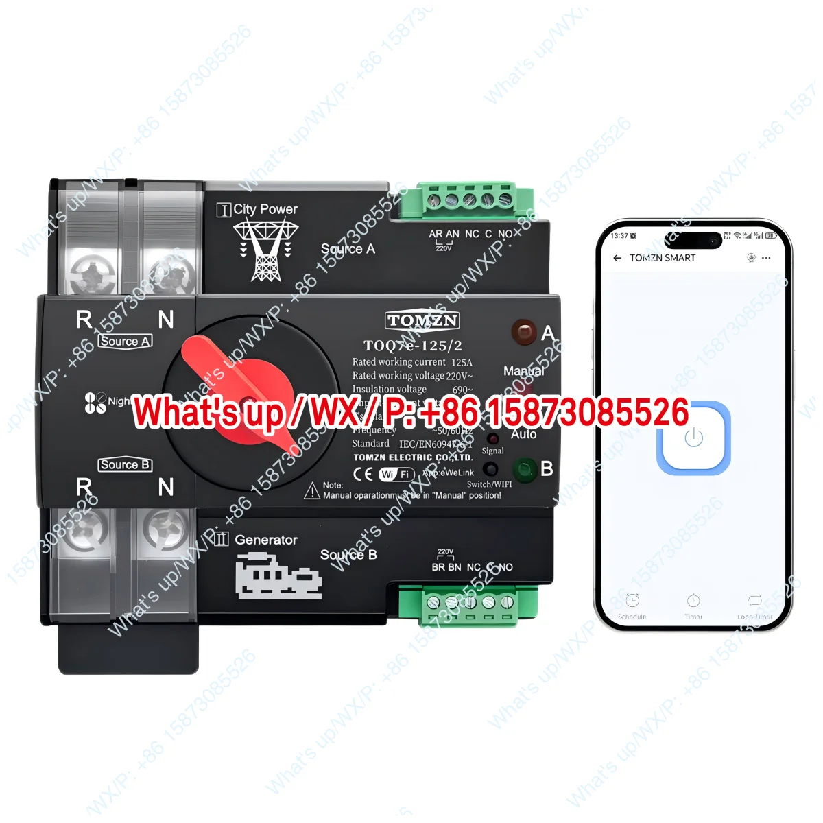 WIFI Intelligent ATS Timer 230V Dual Power Supply Automatic Conversion Electrical Selector Switch Uninterruptible 2P 125A